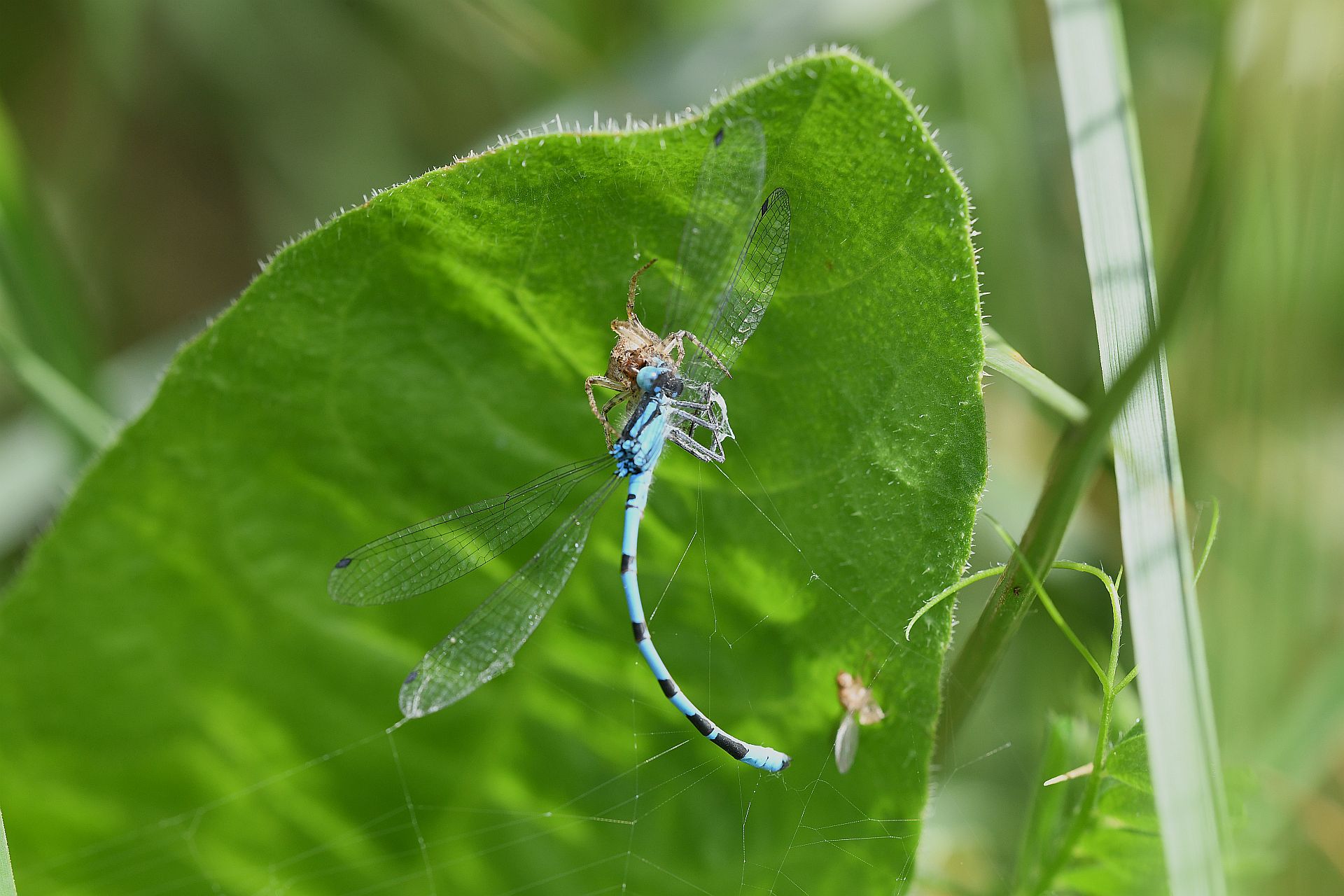 araignée capturant un agrion cf Ennalagma cyathigerum